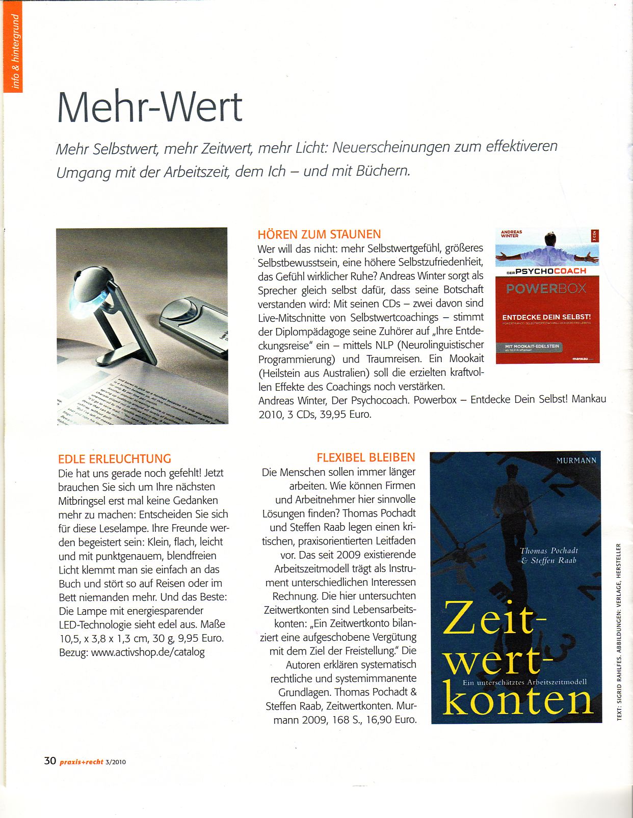 Arbeit und Arbeitsrecht: Rezension zu "Zeitwertkonten, ein unterschätztes Arbeitszeitmodell" [mehr...]